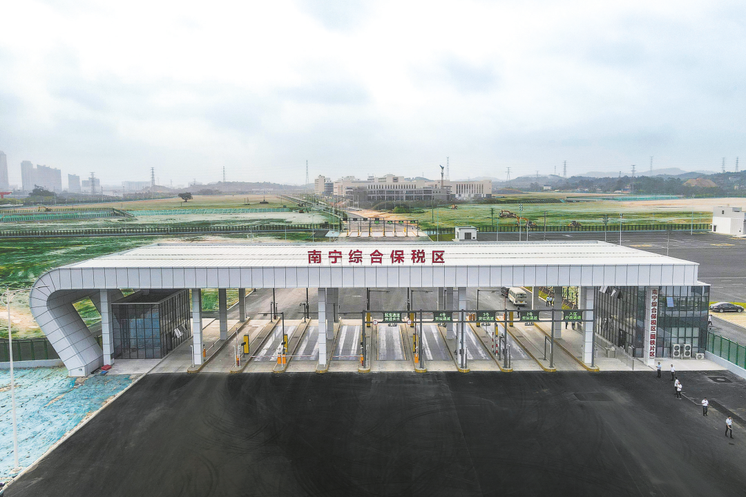 南宁综合保税区(二期)未来将依托南宁国际铁路港实现“港区联动”,促进全市外贸增长。图为南宁综合保税区(二期)主卡口。记者 叶子榕 摄