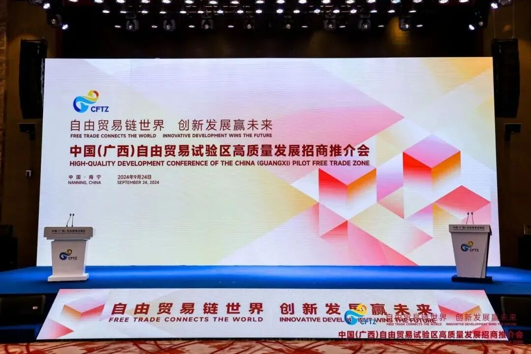 2024年9月,中国(广西)自由贸易试验区高质量发展招商推介会在南宁举行,会议邀请来自西班牙、德国等欧洲国家企业洽谈对接。