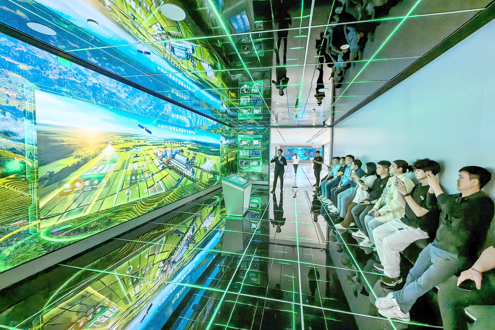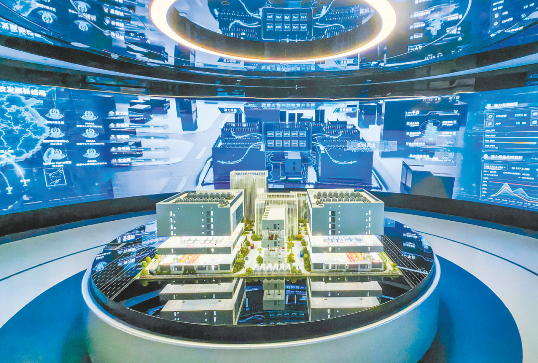 ↑润建股份有限公司的人工智能展厅展示了人工智能技术优势、算力规模、软硬件建设、低空经济等相关情况。记者叶子榕 摄