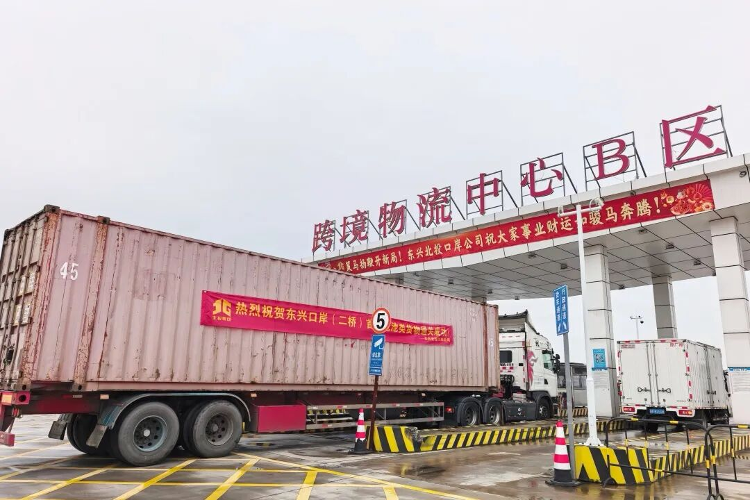 ▲东兴口岸(二桥)首车电池类货物进入北投跨境物流中心。图源公众号@广西东兴北投口岸投资有限公司
