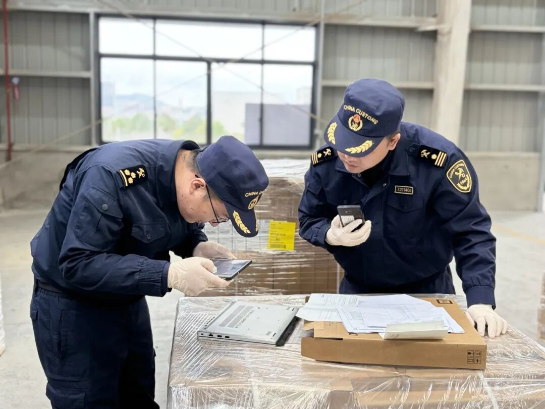 ▲东兴海关关员对电池类货物进行查验。图源公众号@广西东兴北投口岸投资有限公司