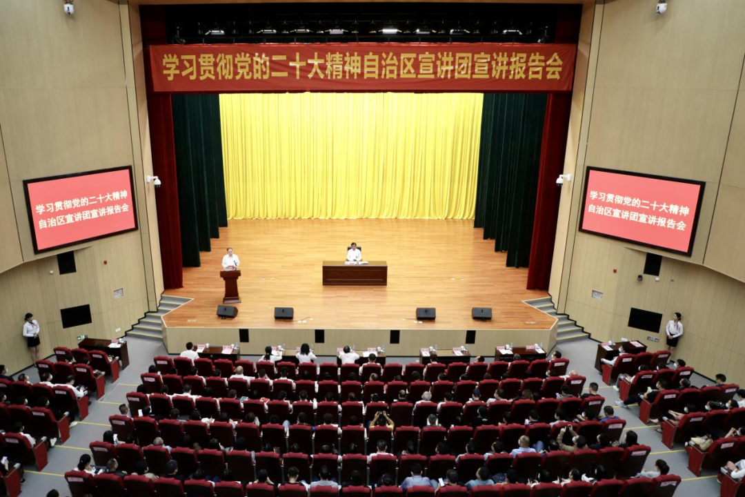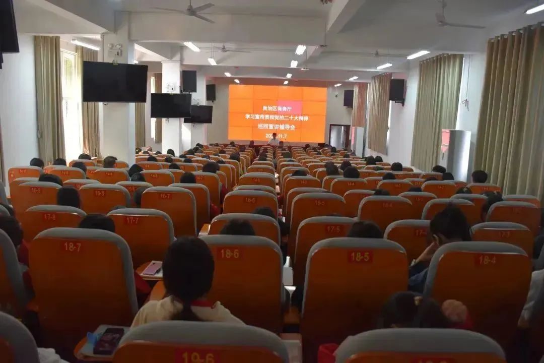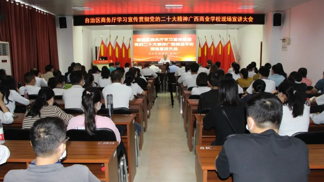 △11月7日,自治区商务厅党组成员周密来到广西右江民族商业学校宣讲党的二十大精神。