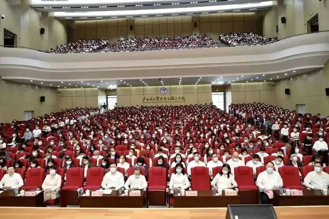 11月11日,学习贯彻党的二十大精神自治区宣讲团宣讲报告会在广西国际商务职业技术学院东盟校区召开。自治区宣讲团成员,自治区商务厅党组书记、厅长杨春庭以《听党话,跟党走,紧跟伟大复兴领航人,用青春谱写中国式现代化广西篇章的华章》为题作了一场生动的宣讲报告,同时也为广大师生带来了一堂精彩的思政课。