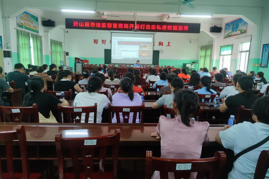 新学期伊始,为进一步提升学生的法治意识,筑牢校园安全防线,广西钦州市以 “开学第一课” 为契机,钦州市打私办联合钦州市灵山县商务局、团县委、县市监局等单位部门,前往钦州市灵山县佛子镇、平南镇开展“学反走私知识,共筑校园安全线”反走私宣传进校园活动。
