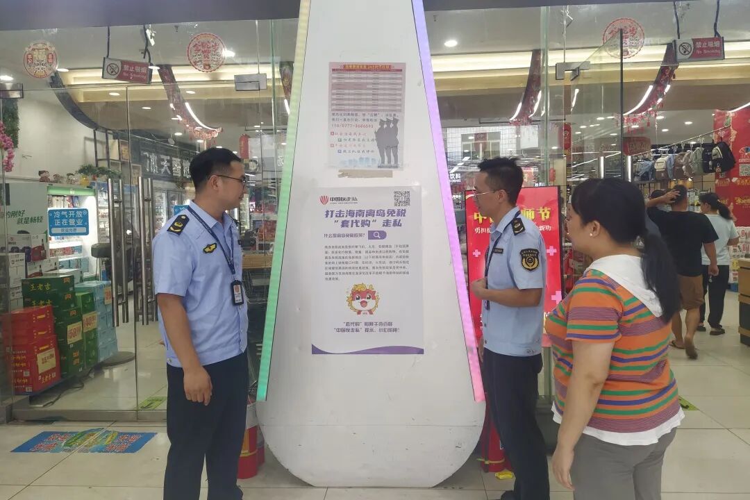 在重点社区服务中心、大型商超门口设置宣传服务台,配备视频播放设备,循环播放反走私内容,方便群众随时观看。同时采用“诚信小组会议+实地走访”模式深入市场开展针对性宣讲,并在辖区小区开展“坚决打击走私 维护国家安全”主题宣传,利用电子屏滚动播放和张贴打击海南离岛免税“套代购”走私等宣传标语和海报,多渠道、全方位强化宣传效果,逐步形成“人人识走私、人人拒走私”的浓厚社会氛围。