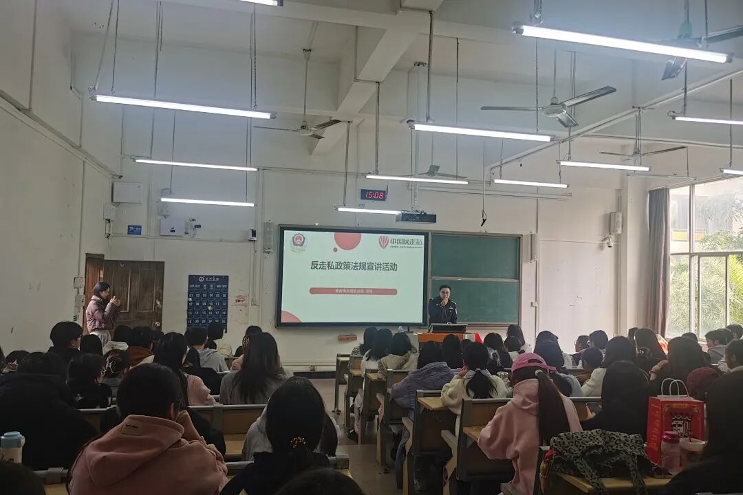 为增强高校学生法治观念与反走私意识,近日,广西贺州市打私办联合梧州海关缉私分局,走进贺州学院,为跨境电子商务、商务英语等专业的学子带来了一堂针对性强的反走私普法课。