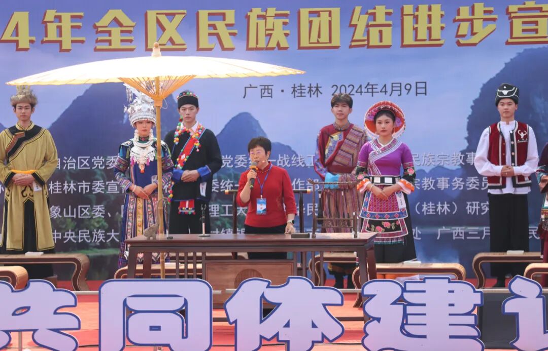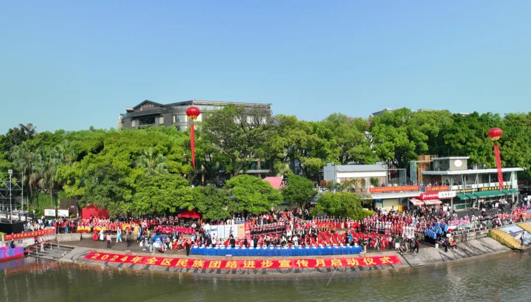 为全面贯彻落实习近平总书记关于加强和改进民族工作的重要思想,深入贯彻落实习近平总书记对广西重大方略要求以及广西壮族自治区党委、政府关于建设铸牢中华民族共同体意识示范区的决策部署,4月9日上午,广西在桂林市举行建设铸牢中华民族共同体意识示范区2024年民族团结进步宣传月启动仪式,开启为期一个月的宣传教育活动。