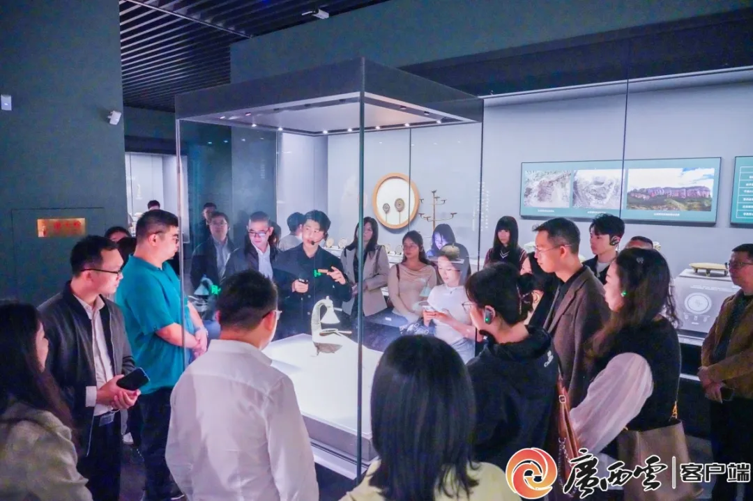 资料图:在自治区博物馆,桂港青年代表观赏文物——羽纹铜凤灯。
