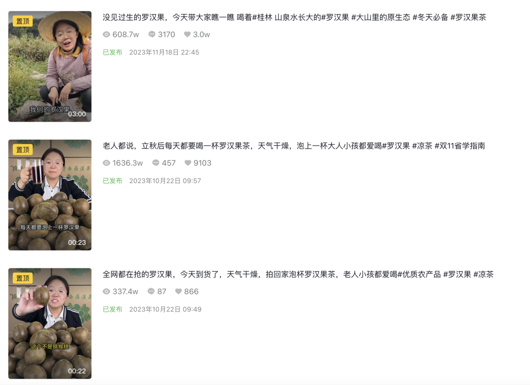 宣传视频在抖音平台发布后,刘畅通过矩阵直播的方式进行直播带货,并在短短2个月时间,累计销售罗汉果超250万元,销量超20万单,销售罗汉果超200万颗。