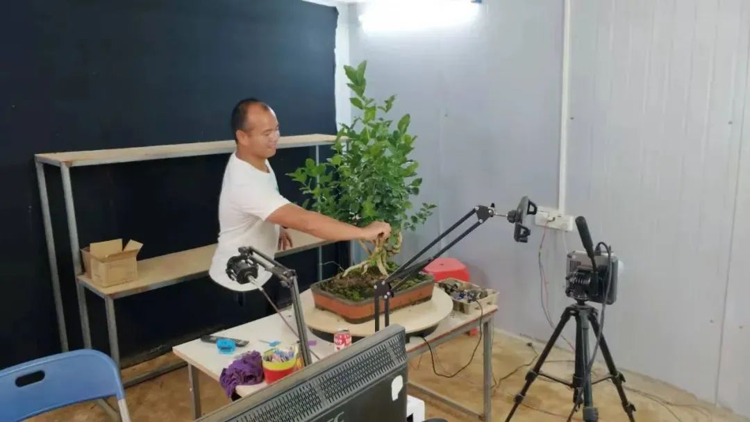 搭建6个“直播间”,以点带面,通过“公司+农户+基地”模式,与周边5个村屯80多户村民和脱贫户建立了茉莉花苗木供应体系,每年收购、销售茉莉花苗木300-400万株,老桩盆栽10万盆以上。