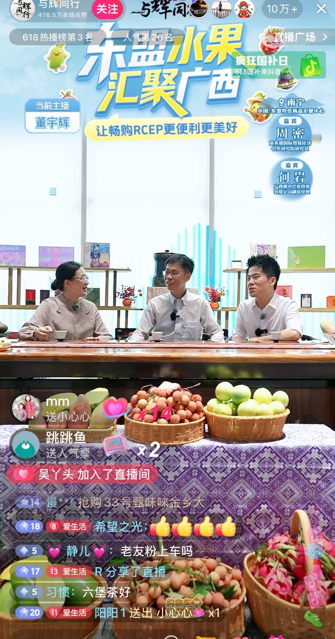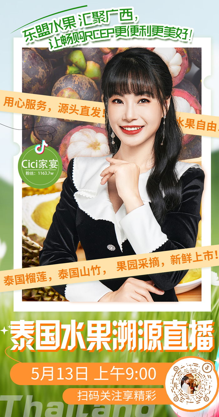 “淘宝吃货”官方直播间及淘宝买菜农场直发官方直播间深入中国—东盟特色商品汇聚中心,开展“东盟水果 汇聚广西”专场直播溯源活动。