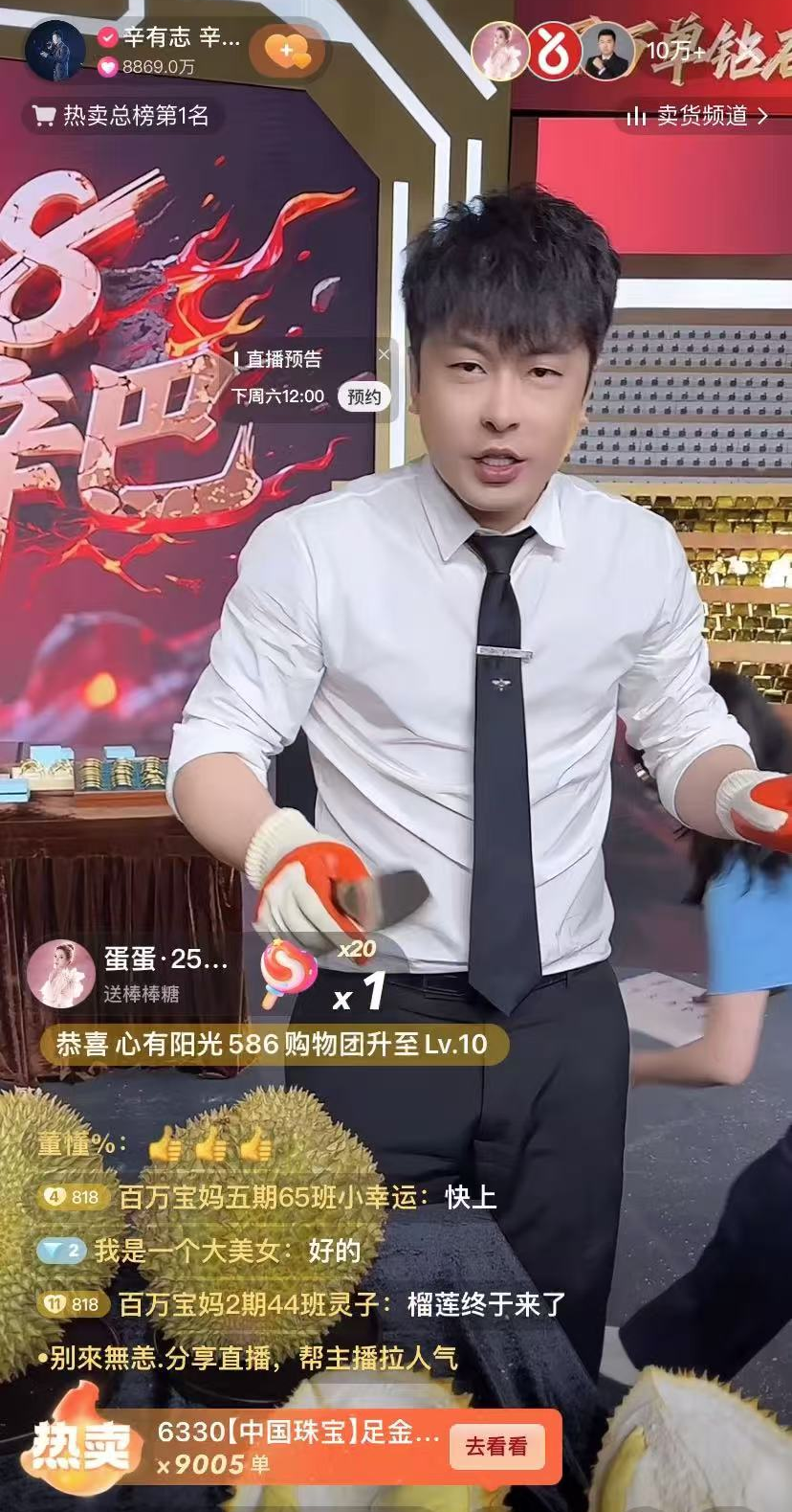 超千万级粉丝达人主播单场直播带动泰国金枕榴莲网络销售破1亿元;