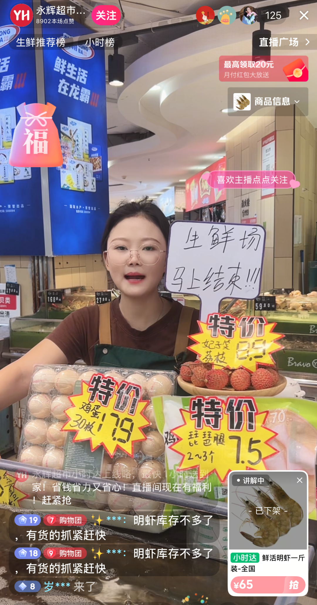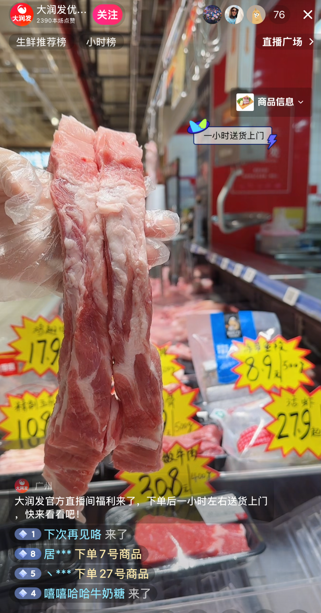 小时达直播覆盖南宁、柳州、桂林、梧州、北海等14个地市,联合永辉、美加美等多家商超,开展抖音、美团小时达及次日达直播,热销品含猪牛羊禽肉及制品、鲜活海产、乳制品、水果等,如近期应季水果榴莲及生鲜小龙虾。