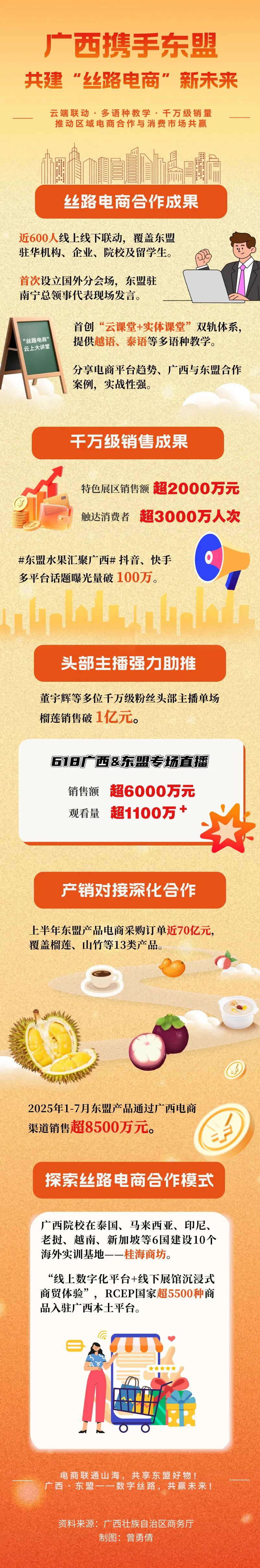 下一步,我们将充分发挥面向东盟开放合作桥头堡的区位优势,持续做好2025年中国—东盟丝路(跨境)电商开放合作主题推介活动各项筹备工作,搭建高水平丝路电商合作平台,支持东盟国家在广西设立商品馆,促进东盟商品在国内销售,打造中国—东盟“丝路电商”区域合作样板,共建中国—东盟电商大市场,在高质量共建“一带一路”中发挥更大作用,服务构建更为紧密的中国-东盟命运共同体。