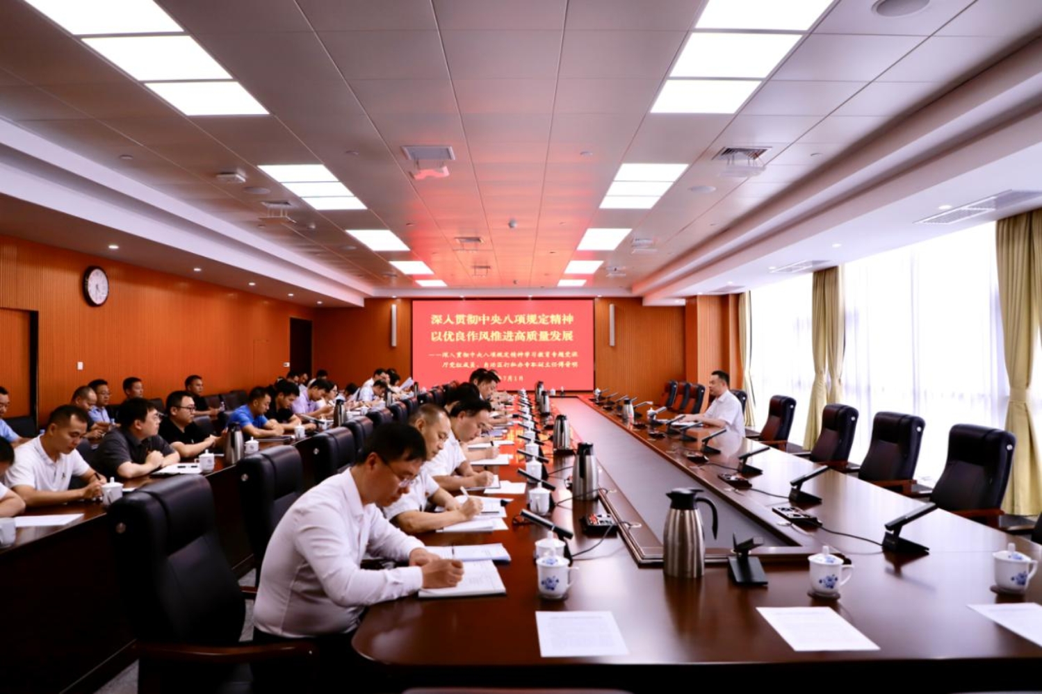 7月1日,厅党组成员、自治区打私办专职副主任傅晋明同志给办公室、政法处、打私办、服务中心、12312商务举报投诉服务中心全体党员共50人讲授“深入贯彻中央八项规定精神 以优良作风推进商务高质量发展”为主题的专题党课。