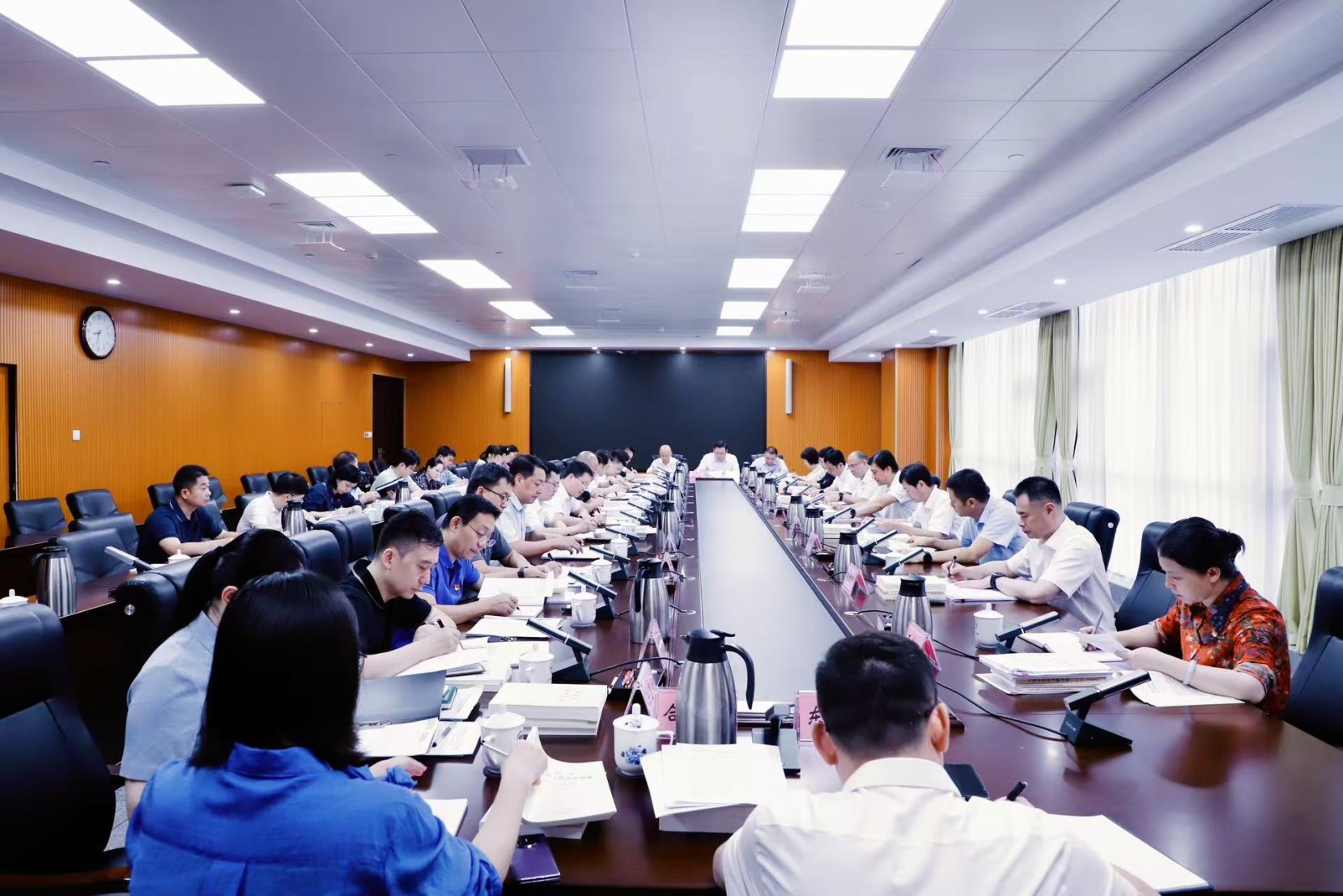 7月23日,自治区商务厅党组召开深入贯彻中央八项规定精神学习教育集中研讨暨理论学习中心组2025年第三次专题学习会,深入学习领会习近平生态文明思想、习近平经济思想,深入学习领会习近平总书记关于党的建设的重要思想、关于党的自我革命的重要思想、关于加强党的作风建设的重要论述,完善作风建设常态化长效化机制,统筹建好政治生态、自然生态“两个生态”,推动高水平开放和商务高质量发展。自治区商务厅党组书记、厅长杨春庭主持并讲话,厅领导班子成员参加,二级巡视员、各处室主要负责同志列席。