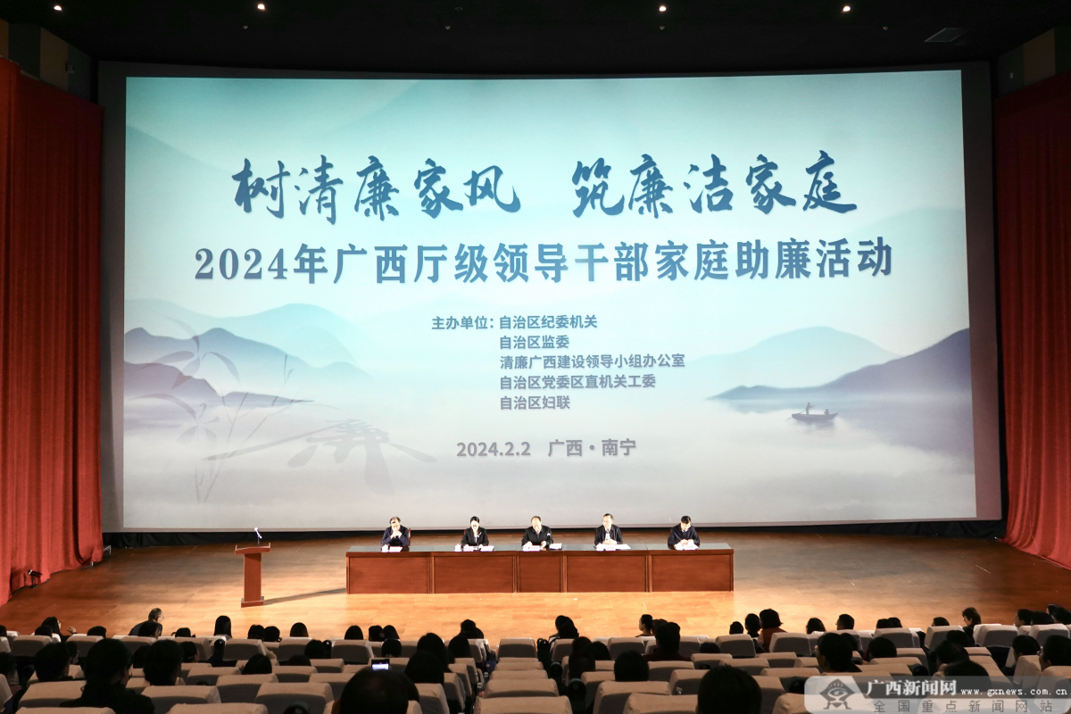 为贯彻落实自治区党委关于清廉广西建设的部署,推动党员领导干部家庭深化清廉家庭建设,2月2日,自治区纪委机关、自治区监委、清廉广西建设领导小组办公室、自治区党委区直机关工委、自治区妇联在南宁联合举办“树清廉家风 筑廉洁家庭”2024年广西厅级领导干部家庭助廉活动。
