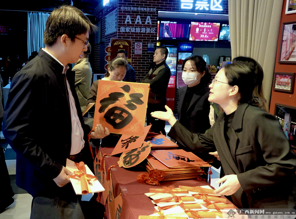 工作人员向与会人员赠上特别的“福”字画,它一面为“福”,另一面为“廉”。记者 柳思羽 摄