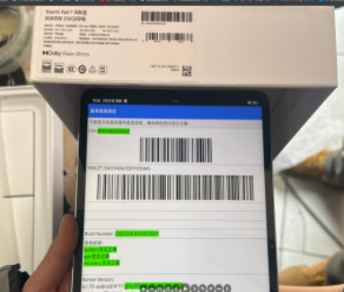上传相关平板3张照片:第一张是商品包装盒上显示SN码的照片;第二张是平板屏幕显示SN码的照片;第三张是商品包装盒SN码和平板屏幕显示SN码的照片。(详见以下例图)