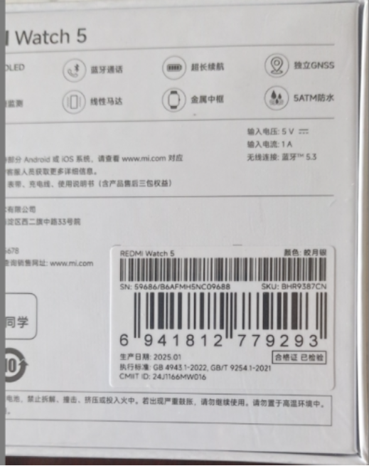 三、关于上传智能手表(手环)现场激活的产品实物及包装盒照片要求