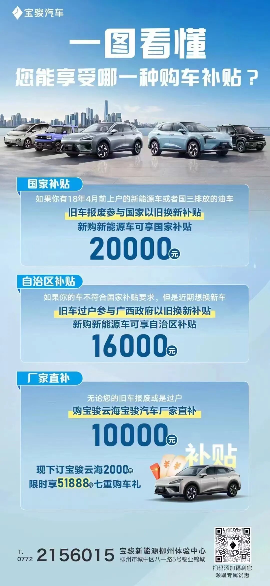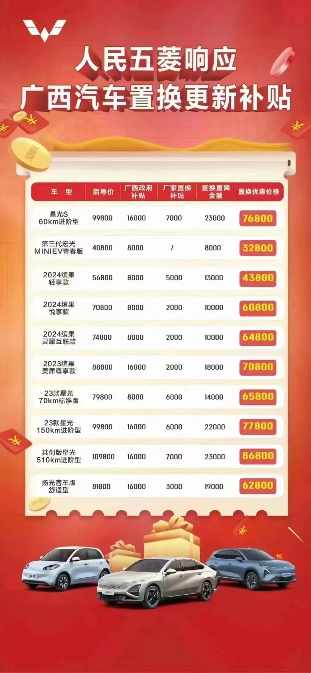 上汽通用五菱以旧换新至高可享受3万元的补贴,五菱星光至高置换补贴1万元;