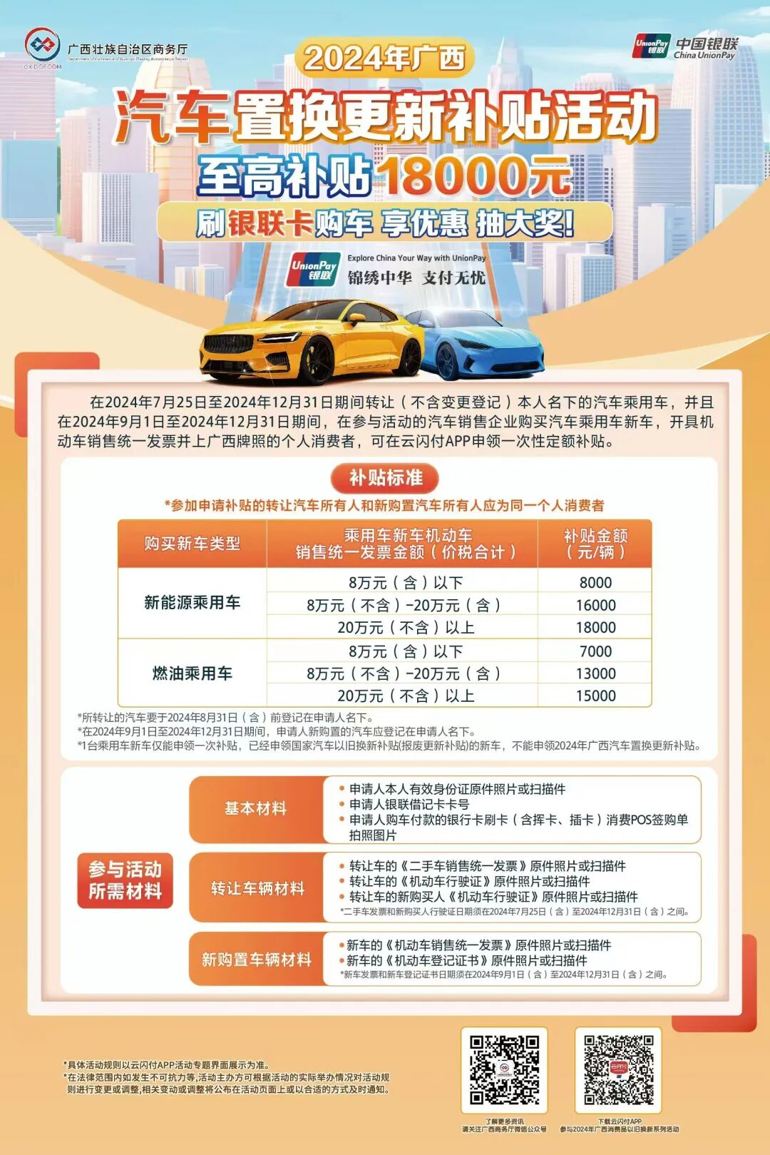 汽车置换更新补贴标准新能源车最高1.8万元,燃油车最高1.5万元,较以往增长超3倍以上;